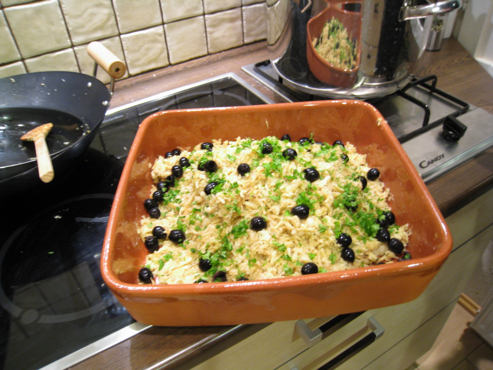 Kuni meie otsisime veinikeldrist veini, oli Paulo vahepeal toidu valmis saanud, kallanud selle ümber soojendatud keraamilise alusele, lisanud musti oliive ja kaunistanud peterselliga