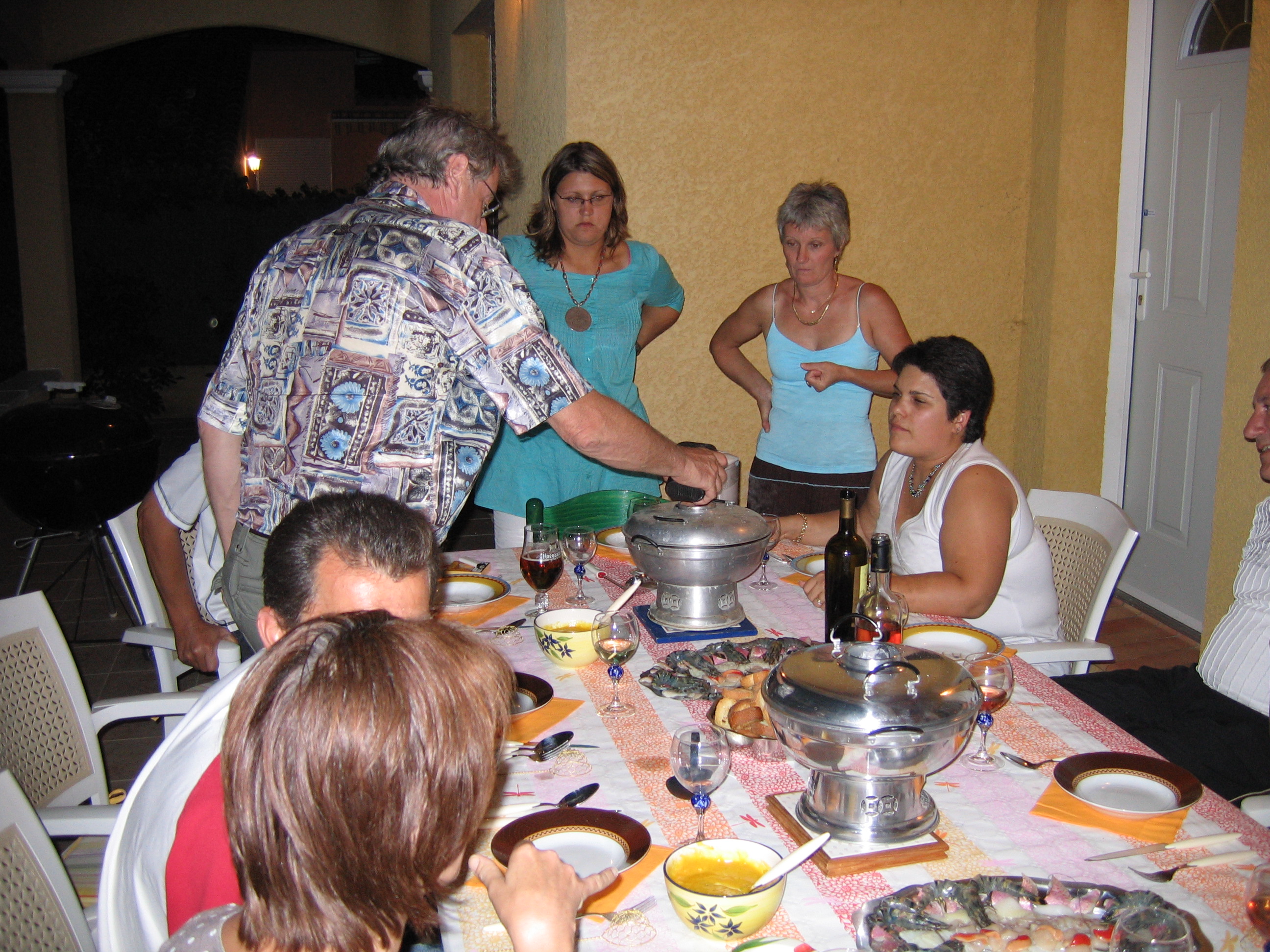 …saabuvad meie kööki prantslased ja et neil köögis igav ei hakkaks, tellisin neile merikeelt, st. peetruse kala, meripoisurit, merikuradit, kaheksajalgu, kalmaari, vutte, põldpüüsid. Patricku Moules jardinières (sinimerekarbid aedniku stiilis) viivad lihtsalt keele alla. Sete kööki kuuluvad aga sellised toidud nagu: La Bourride de Baudroie, Bouillabaisse Sete moodi, La Rouille de Seiche, La Macaronade aux brageoles- loodame neid kõiki saada…