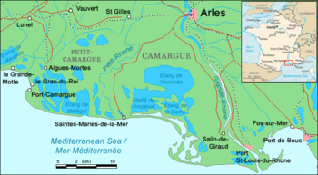 Camargue´s asuvad linnad Arles, Saintes-Maries-de-la-Mer ja Aiques Mortes on kõik omanäolised ja vaatamist väärt. Arles´s on säilinud rooma ajastu areenid, Saintes-Maries-de-la-Mer´is toimuvad iga aasta mai viimasel nädalavahetusel(ei ole selles 100% kindel, see võis olla ka mai eelviimane nädalavahetus) ülemaailmne mustlaste festival, kus nad tulevad austama oma Musta Püha Sarat.