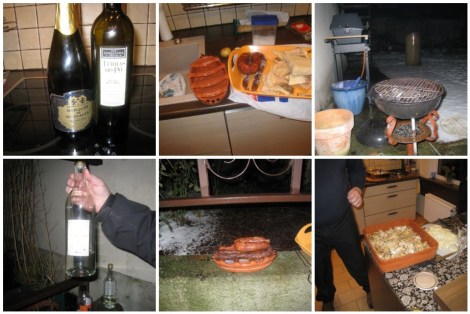 Meie jõulud algasid juba laupäeval 20-l detsembril, kui käisime Kristiina ja Paulo juures jõulu õhtusöögil. Sõime aquardentega(sõna sõnalt põlev vesi, Portugali nn. grappa) küpsetatud chourizo vorste, grillitud ja seejärel ahjus küpsetatud bacalhaud(soolaturska) ja koorega küpsetatud kartuleid küüslauguse oliivõliga.