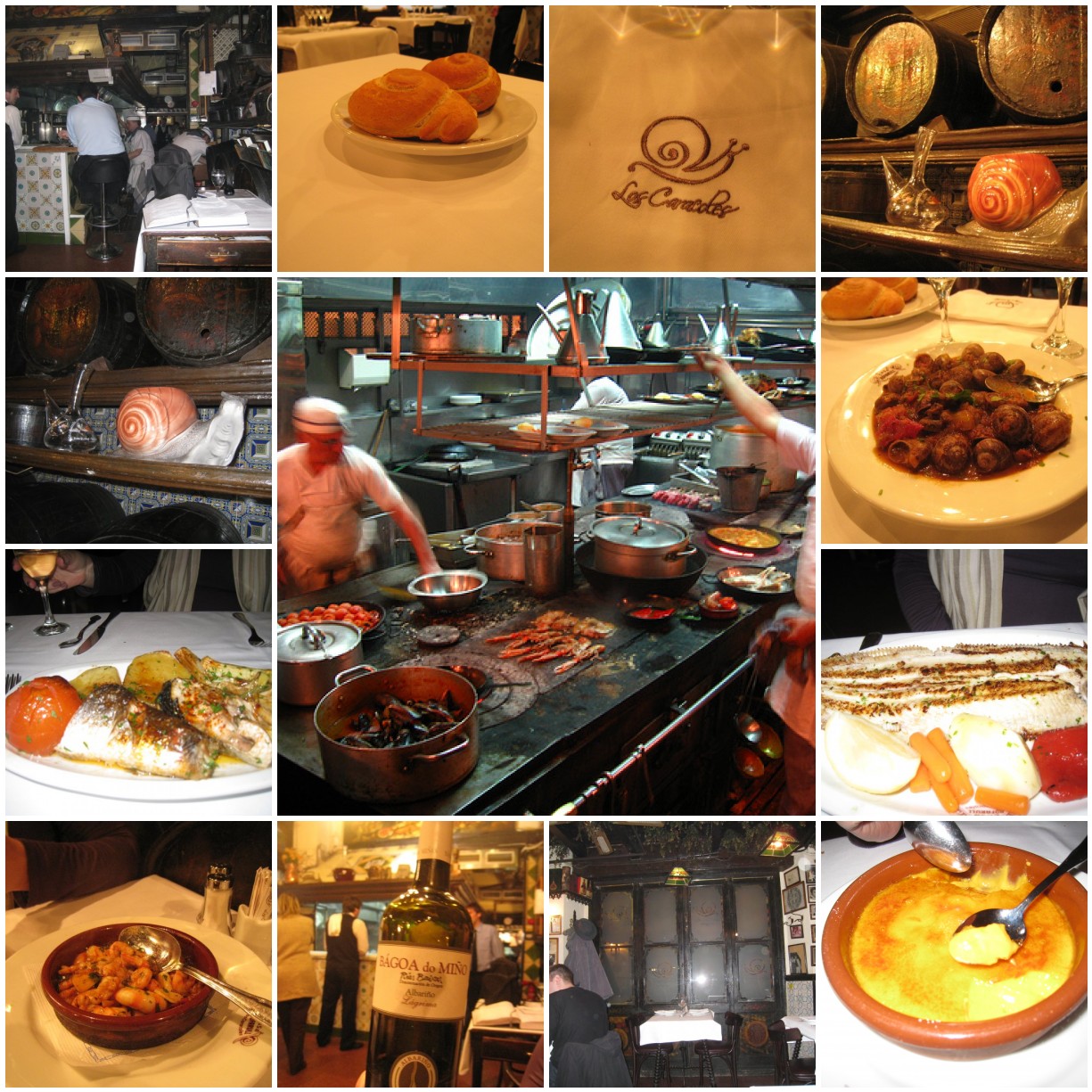 Väga head muljed on aga seekord Los Caracolest (Tigu), mis veel aastaid tagasi oli nii rahvast täis ja teenindus käis stiilis, et turistile kiirelt toit ette ja võimalikult ruttu laud vabastada- siis nüüd oli asi inimlik ja me saime laua vaatega köögile. Barcelona Tigus peab klient köögist läbi minema, et lauda jõuda. Me Kadriga mõtlesime just Eesti ametnike peale, kes arvaksid, et see on täiesti lubamatu….isegi kui koht ajalooline on..