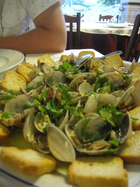 Kuna eile oli mitu korda juttu, et sel aastal ei ole mitte kuskil ameijoa-karpe, siis läksime kohe spetsiaalselt õhtul restorani Marinhas, kus me paar aastat tagasi Liina ja Inesega uskumatu koriandriga tehtud karpide elamuse saime. Karpe oli seal, aga hind on täiesti uskumatu! Selline taldrik maksis 13.50 (eelmisel aastal umbes 4 eurot)