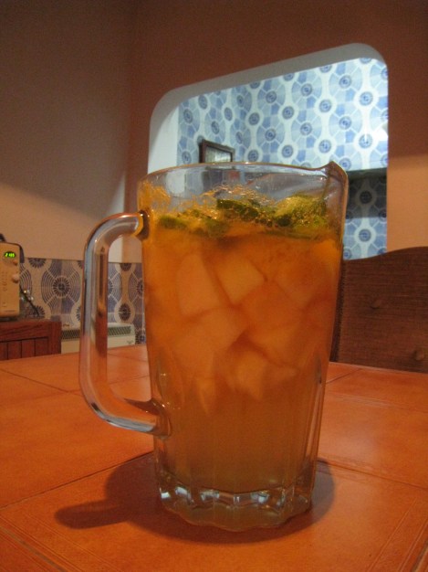 Ja siis saabus teine ebaõnn- üheski poes ei olnud guaavat. (No mis mõttes ei ole- ise jagate oma retsepte ?! Otsa olla saanud-tulevad esmaspäeval..) Hea küll, tuleb mango-valge meloni Sangria pisukese mündiga. Pille pani just kodu-limonaadi retsepti üles, mul oleks hädasti seda home-made limonaadi vaja, aga ei ole aega oodata- läks poe oma käiku 🙂