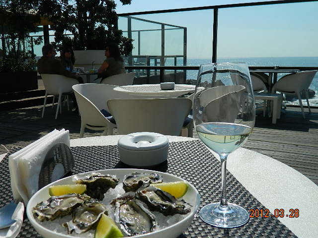 Porto on aga piisavalt suur linn, et leida sealt restorani, kus kokad juba kunsti ka harrastavad. Eile oli imeilus ilm, kevadest asi kaugel- puhas suvi, kus temperatuur 30 ringi ulatus. Ja tuli tahmine et läheks kuhugi kus saaks lainet vaadata ja kaunis toolis istuda ja ilusast klaasist juua. Et oleks nagu Cotê d’ Azur ja Key West , Ibiza ja LA korraga 🙂 Selline koht on Portos, Fozis täiesti olemas, hinnatasemelt teistest rannabaaridest kallim ja kus käivad kohalikud trendiinimesed. Pakutakse sushit, carpacciosid, kaunilt sätitud salateid rohelistest libledest, austerid ka …
