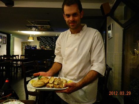 Pearoaks valisin ma endale kuld- merikogre, lihtsalt tahtsin vaadata kuidas nemad seda teevad. Hing oleks muidugi ihaldanud kalmaari-seepia feijoadat, aga see roog vajab veidikest ettevalmistus ja küpsetamisaega, siis arusaadavalt seda eile ei saanud 🙂 Kogre puhul oli kasutatud täpselt samu maitsestamisviise nagu meie Tigus seda teeme- rosmariin ja sidrun. Ja kõrvale oli sortsutatud veidi basiilikuõli.