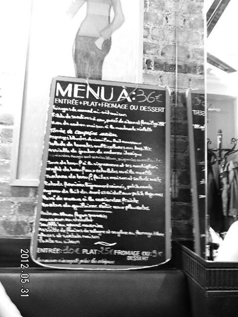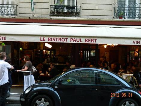 Kuna kõht oli tühi, siis ei suutnud me poolteist tundi oodata ja suundusime sama rajooni teise üsna kuulsasse kohta, mille nimi Bistrot Paul Bert. Asub see Berti tänaval, mis on üsna tilluke ja päris keeruline on teda leida. Kohake kuulus oma tohutu veinivalikuga ja menüü on klassikaline, aga kiidetakse just veise igasugu tükke: entrecote, pavet, faux filet etc. Kuna kohta on Ameerika pressis kõvasti haibitud, siis loomulikult on saalid ülelombi inimesi paksult täis, aga on ka kohalikke. On püsiklientide lauad, kuhu turist istuma ei saa jne. Aga eriti meeldis mulle ainult prantusekeelne menüü, mis tahvlile kirjutatud ja ameeriklased hoolsalt ja iseseisvalt sõnaraamatu abil väga vapralt tõlgivad seda ümber. Ja kõige parem on tahvlil märkus, et liha küpsetusastmeid on nende majal 3: toores, verine ja medium-rare. Keegi ei võta mingit medium plusi ja well done teemat kuulda ka mitte!