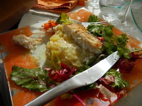 Mõned meie hulgast ei suutnud valikut teha ja võtsid nn.päevaprae, milleks oli ürtidega kartulipüree kohaliku kalafileega. Ma kahjuks ei mäleta enam, mis kalaga täpselt tegu oli 😦