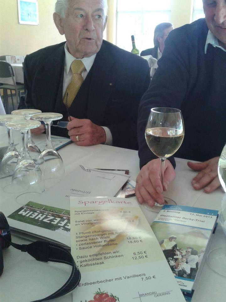 Meil oli kutse veiniterrassile ehk siis tavarahva parimale tribüünile  ja sealt kahjuks ei näinud, mis toimub kõige eksklusiivsemal  „Champions Club“  loožides ja kes kuulsustest kohal on. Kuid meie lauas istus näiteks ka Iffezheimi väga edukas senior ärimees(allpool ühel pildil ka) 85 aastane herr Kronomus, kes Tallinnat järjekindlalt Revaliks nimetas ja kõrvallauas ka Iffezheimi linnapea, mis näitab, et ka inimesed, kes võiksid endale luksust lubada, on pigem mõistlikud 🙂