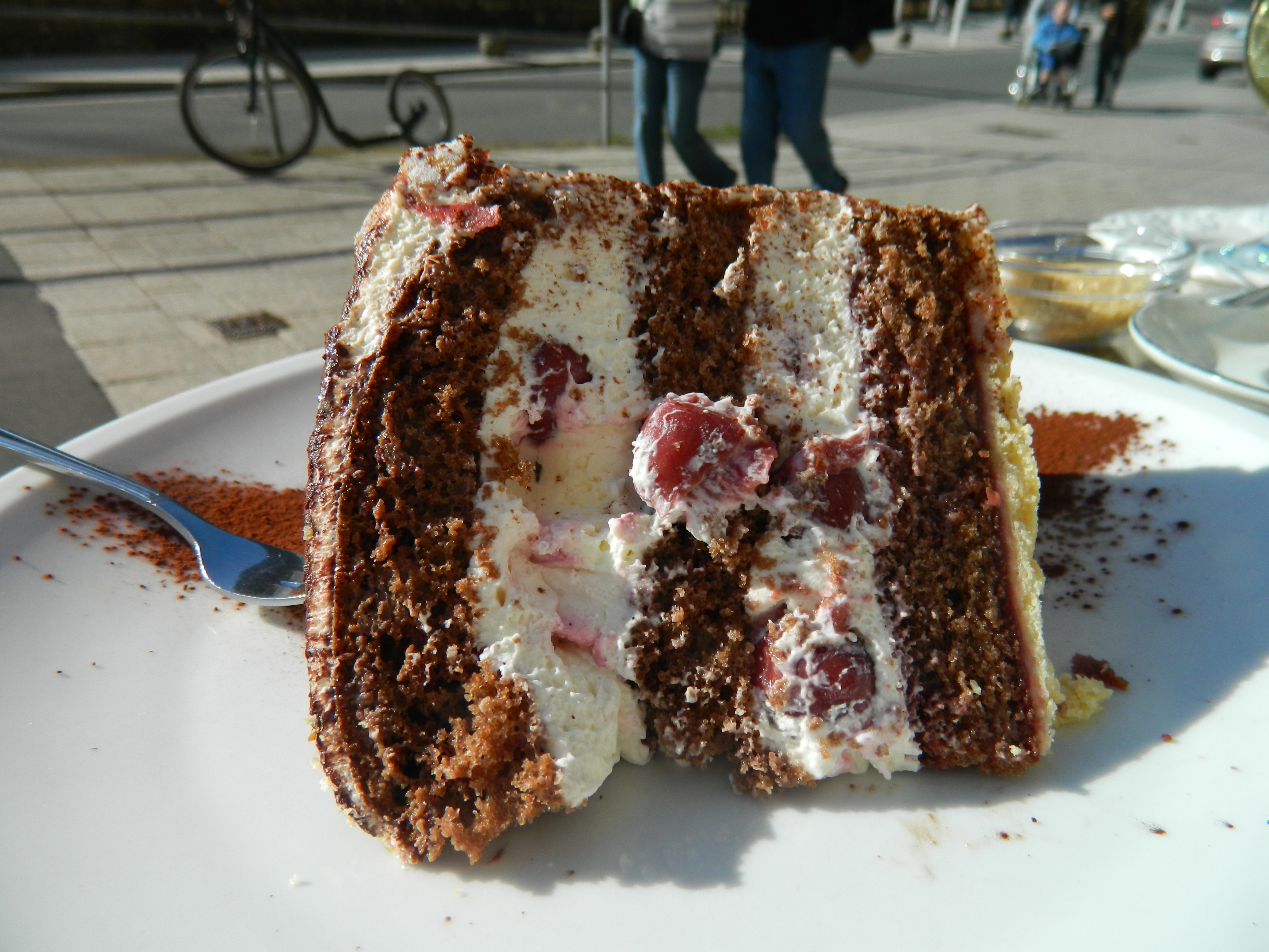 Igatahes oli tore, vaatmata sellele, et tagasitulles tuli liiklusummikus istuda ja terrassid oli rahvast täis ja kohta oli võimatu leida. Lõpuks ikka leidsime kena päikeselise terrassi ja ma lubasin endale, vaatamata paastule, ühe Schwarzwälder kuchen´i.