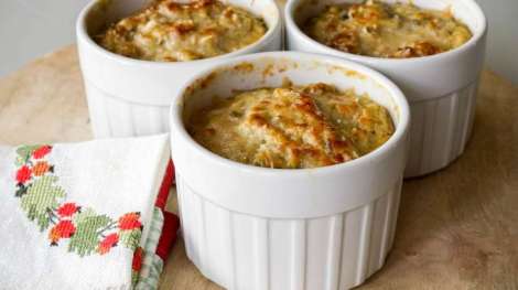 - Aseta segu ramesquin’ idesse ja puista peale parmesani. Küpseta 180° ahjus 10 minutit ja seejärel pane ahi grilli režiimile ja pruunista parmesan.