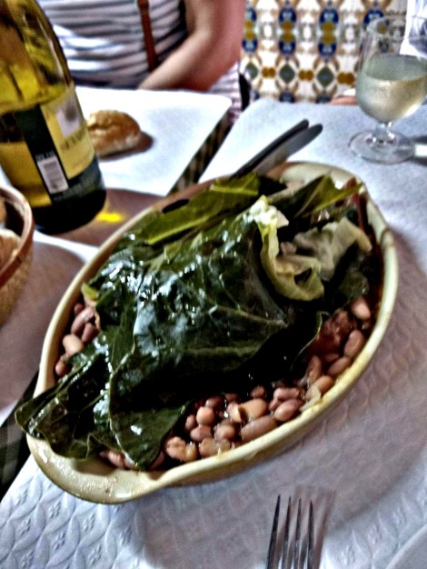 Feijoada- hautis ubade ja sea “peenemate” tükkidega nagu kõrv, kärss, koot. Peal Portugali kapsa lehed- Couve Portuguesa