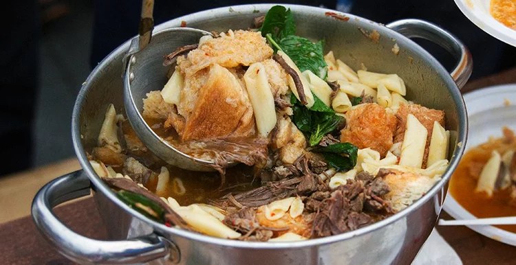 Supi peamised koostisosad on küpsetatud veiseliha ja leivaviilud. Keedetakse leem, mille maitseks pannakse, nelki, sibulat, küüslauku, loorberilehte, võid ja valget veini ja kapsast. lisatakse küpsetatud veiselihaviilud ja kõige peale koduleiva viilud ja piparmünt. Kogu see pidulikus seisneb selles, et seda keedavad kogudused, organisatsioonid, ühingud, linnatänavatel kaetakse pikad lauad ning inimesed tulevad tänavale suppi sööma! Kuid loomulikult leiab turist seda ka restorani menüüst, kuid kui Nelipühade aegu saartele sõita, saab pidustustest osa võtta!
